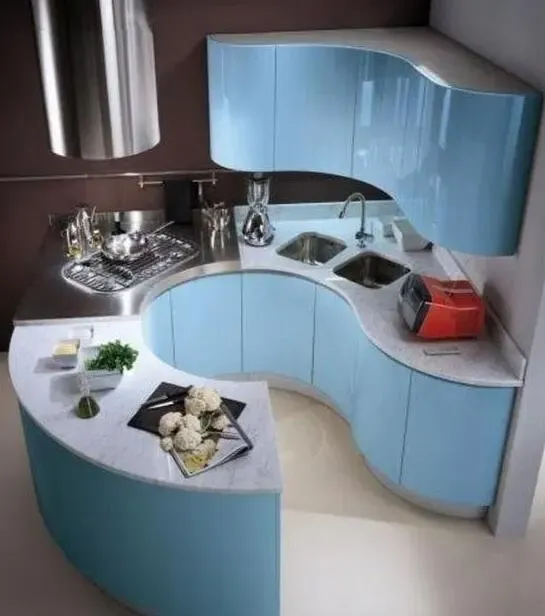 把厨房布局半圆形的 锅台围着一人转