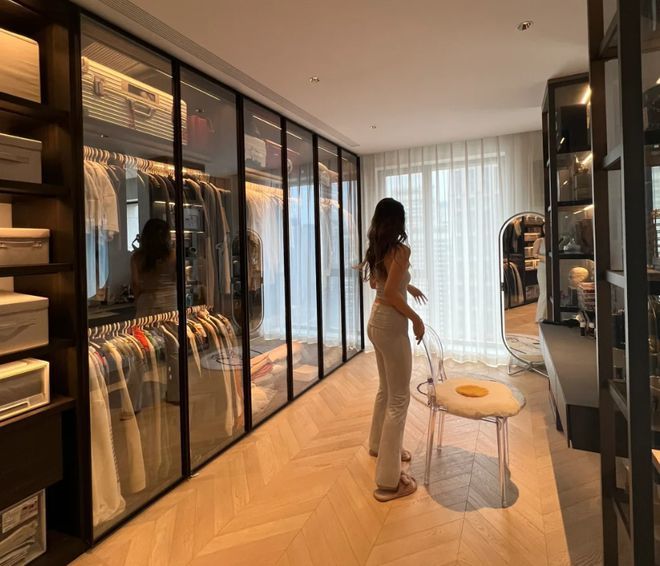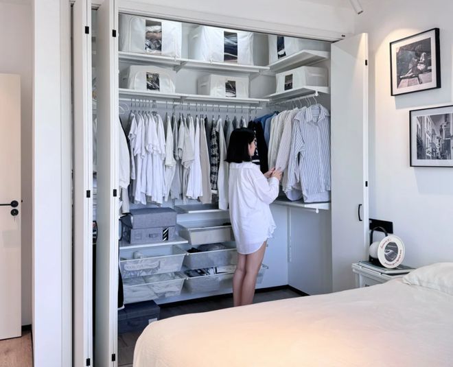 最理想的做法,就是把衣帽间放到主卧外面,一来释放了主卧面积,二来让衣帽间完全独立。无论是三口之家,还是三代同堂家庭,都可通过衣帽间弥补收纳。