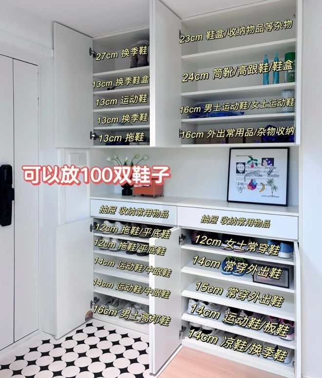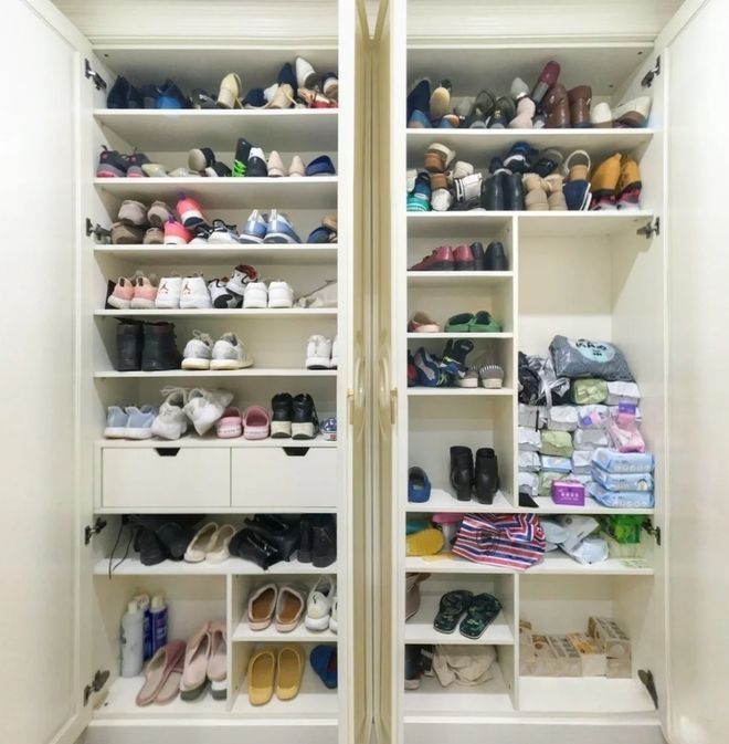 可入住后,我才发现隔层结构越复杂,收纳率就越低,并且自己也没有几双长筒靴和中筒靴,既浪费了空间,又非常凌乱。