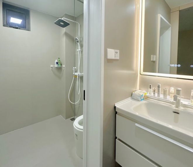 此外,淋浴区也不一定要和卫生间挨在一起,只要能解决排水问题,家里任何一处都可以改造成独立的淋浴区,同样达到三分离目的。