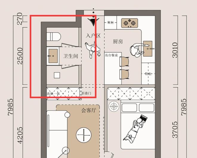 大多数家庭的卫生间面积都很小,所以能不能改造成三分离结构,墙体能不能拆是最关键的一点。若可以拆,那么就很简单。