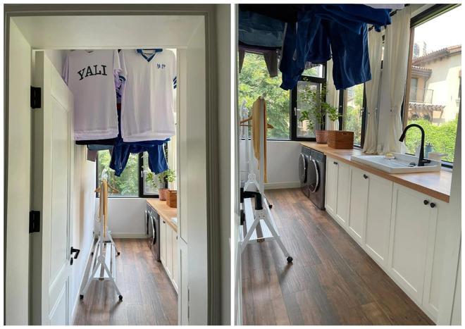 2)洗衣房不一定要在南面,衣服也不一定要在阳光下晒暴,家里若有其它阳台,一样能改造成独立的洗衣房。